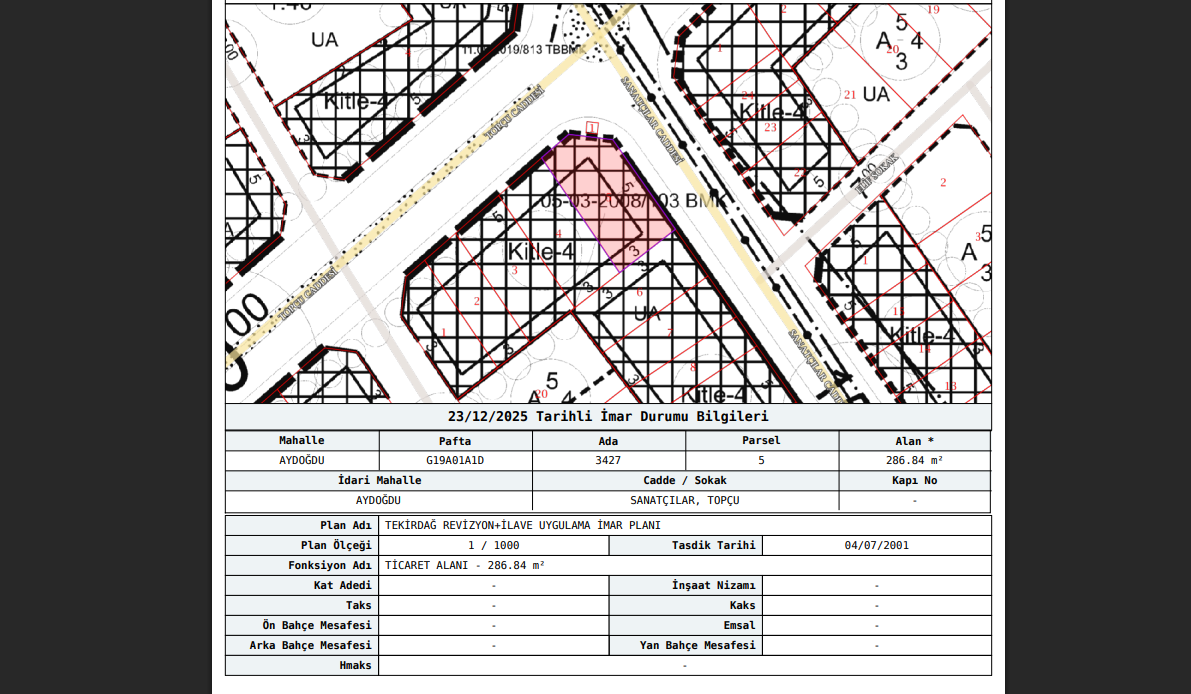 Konumu, imar durumu ve metrekare avantajı ile müteahhitler ve yatırımcılar için kaçırılmayacak bir fırsattır.