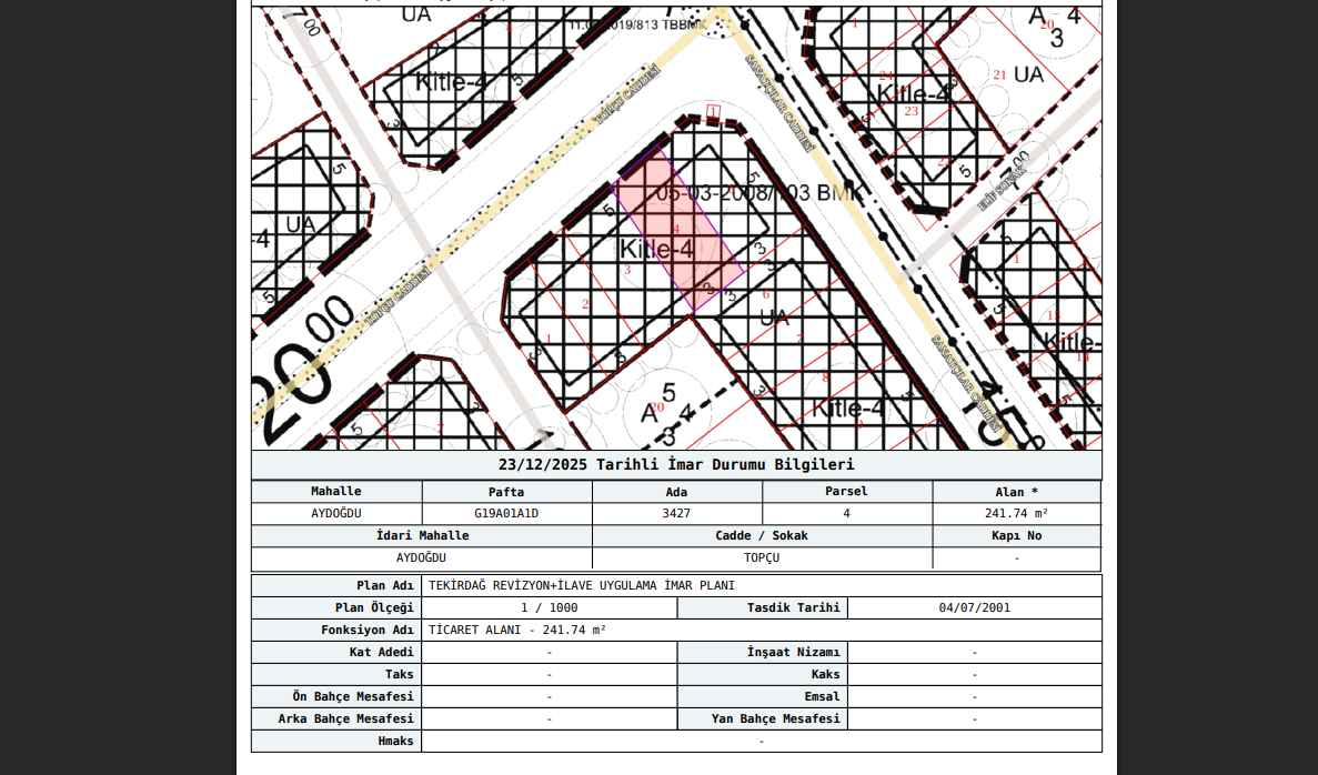 Konumu, imar durumu ve metrekare avantajı ile müteahhitler ve yatırımcılar için kaçırılmayacak bir fırsattır.